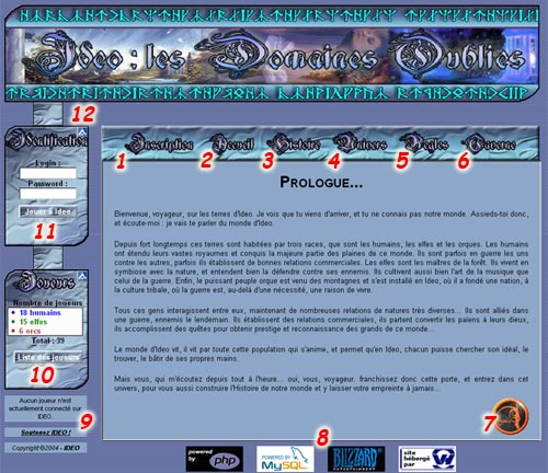 - Taverne : Une page de détente où vous pourrez vous connecter au salon irc d'Ideo ou encore