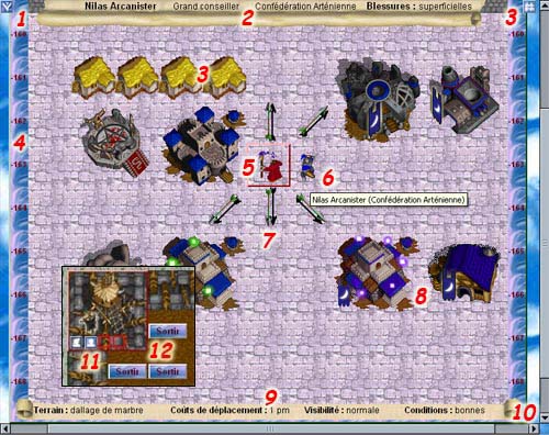 - Ce petit parchemin indique les informations sur le terrain survolé par la souris. Pour infos, les conditions