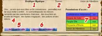 - Information sur la ville (si vous êtes en ville). Cliquez sur le nom de la ville pour plus de détails ou