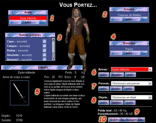 validé via ce bouton. Valider un changement d'équipement coûte 1 PA, donc soyez bien sûr d'avoir tout fait avant de valider,