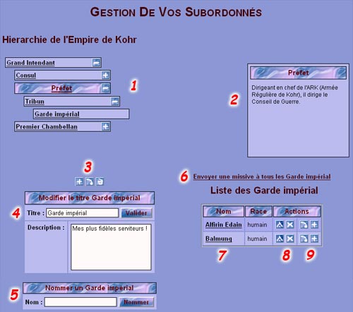 - Hiérarchie du royaume : utilisez les boutons "+" et "-" pour parcourir l'arbre. Votre grade