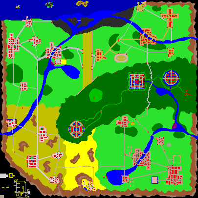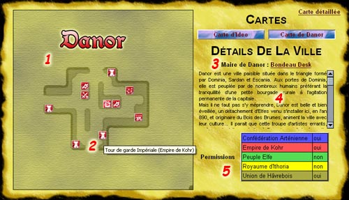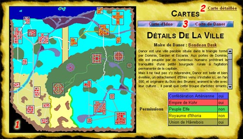- La carte principale : Les villes sont entourées d'un cadre. Cliquez dessus pour en voir